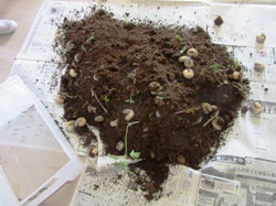 見事発芽したタネ達を,今日,プランターに移し替えました。