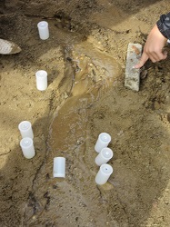 前の日までに,猫車に4杯分の砂を運んでおいてもらいました。