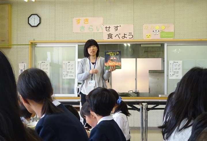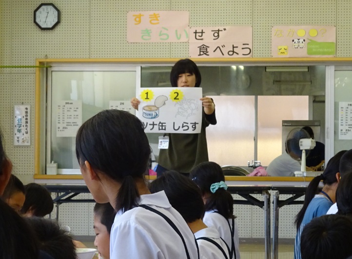 給食時間には、今日の献立について栄養教諭からお話もさせて