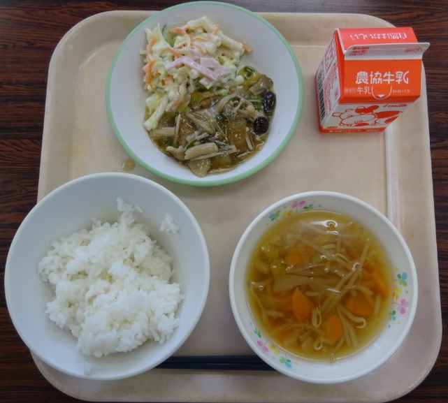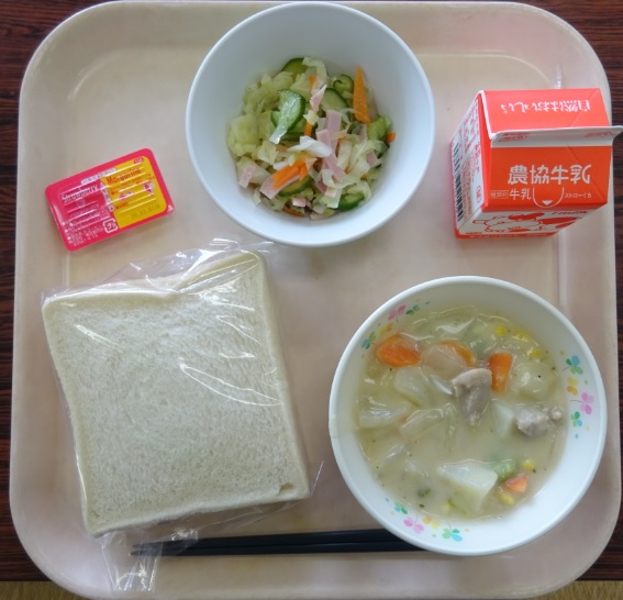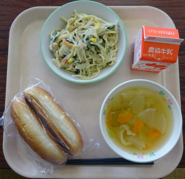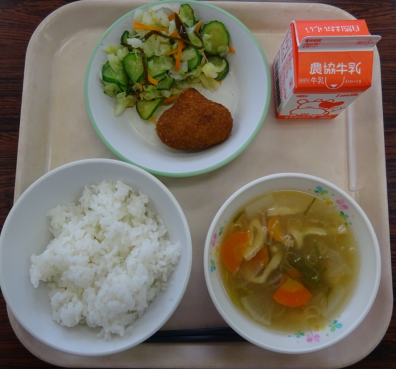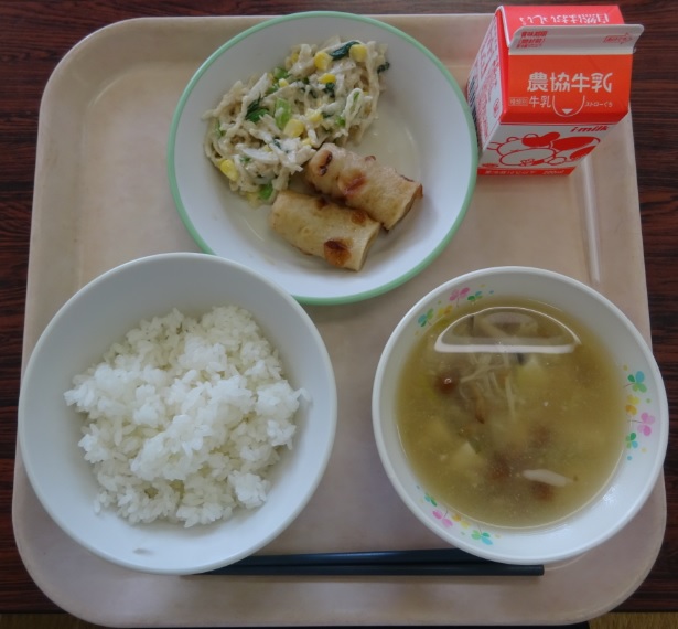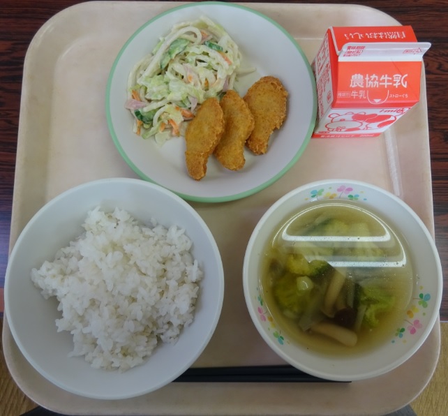 卵やコーンの黄色がきれいで、春らしい彩りの献立になりました。