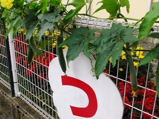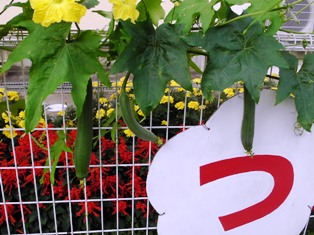 4年生が育てているヘチマが,たくさんの実をつけています。夏には,一日で10㎝以上つるが伸びていました。9月になってからどんどん実をつけ20個以上になっています。
