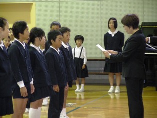 いよいよ12月(師走)です。今日の全校朝会では,たくさんの表彰式の後,学校長から「衛星はやぶさ」や「合唱の取組」を例に,「目標を持ち,こつこつ努力することの大切さ」についの講話がありました。