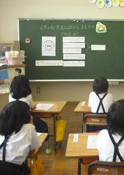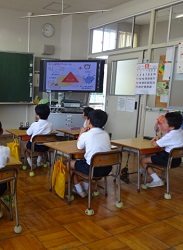 保健委員会では、朝自習の時間に「あさねぼうしたへろおくん」というパワーポイントの紙芝居を1、2年生に読み聞かせしました。
