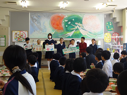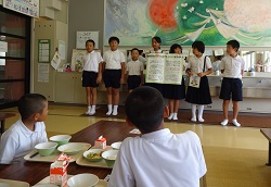 保健委員会で2年生に賞状を渡したいということで、給食の時に紹介しました。