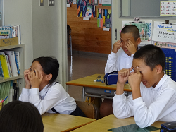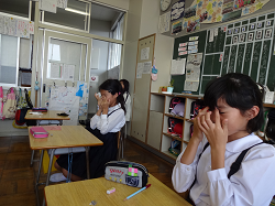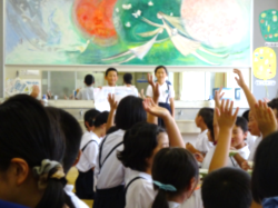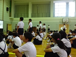 橋元先生のお話の時、児童からは「光が体内時計をリセットしてくれるの?」「リズムが狂ってるから昼、頭痛いんかな?」などの声がきかれました。