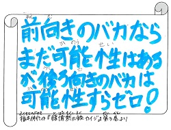 今日の言葉は「前向きのバカならまだ可能性はあるが、後ろ向きのバカは可能性すらゼロ」。