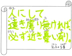 今日の言葉は「人にして遠き慮り無ければ、必ず近き憂い有り」。