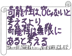 この言葉を選んだ保健委員さんは、可能性は無限にあると考えると、自分が何でもできそうだから、この言葉を選んだそうです。