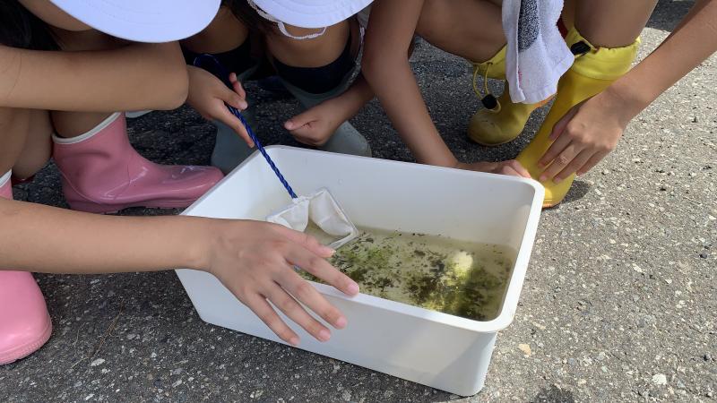 本日、本校の5・6年生が市内の他の2校5・6年生と合同で、幼魚の放流体験や魚礁についての学習をさせてもらいました。今回の幼魚は、クロダイ5000匹。小さいながら、しっかり鯛の格好をしており、海に放たれると勢いよく泳ぎ出していました。魚礁は丁度今、蛸島港で作られている最中です。型枠を見学させてもらい、魚礁設置後の海中の様子も映像で見せていただきました。海への関心が、また高まった1日となりました。お世話いただいた皆様方、本当にありがとうございました。