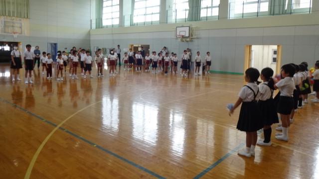 今日はイベントを2つしました。1つは、1・2年生に「本の読み聞かせ」です。もう1つは、2年生との「ドッジボール」です。どちらも3年生がリードし、頑張っていました。おかげで、1・2年生はとても喜んでいました。