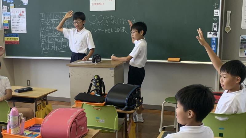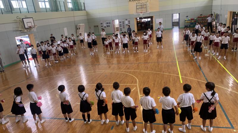 10月に1~4年生でバス遠足を予定しています。4年生をリーダーに班毎に分かれて遠足のオリエンテーションを行いました。行先や遠足での注意点等を、4年生がうまくリーダーシップを発揮して頑張っていました。その姿は頼もしい限りでした。班毎の集合旗も披露されました。このオリエンテーションでバス遠足が更に楽しみになったことでしょう。