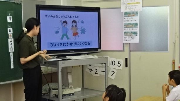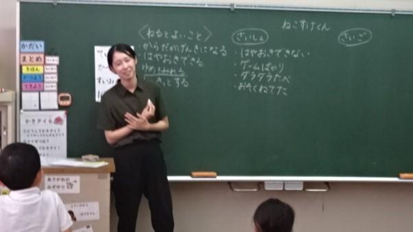 1年生に向けて、「睡眠」についてのお話をしました。1年生なりに、睡眠の大切さについて、よく理解してくれたようです。いつの間にか夜の時間も長くなってきました。「寝る子は育つ」と言います。これからも、睡眠を大事にしていってほしいと思います。