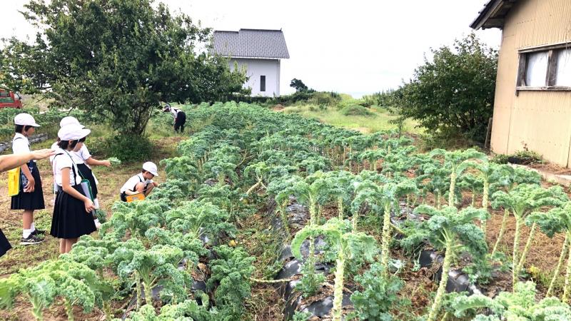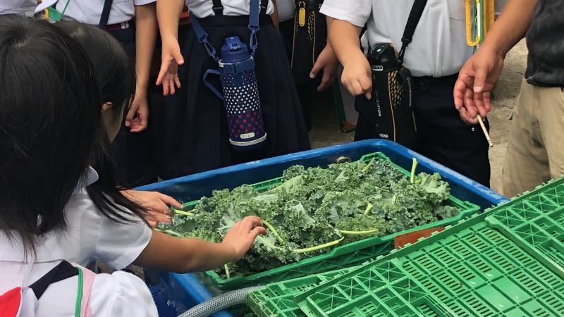 3年生が社会科「畑で働く人々の仕事」の学習で、市内にある農業生産法人べジュールさんに行かせてもらいました。そこで「カリーノケール」という珍しい野菜について、栽培の仕方等様々なことを教わりました。収穫体験もさせてもらいました。今日の学習を通して、畑での仕事についてその大切さを学べたことと思います。お忙しい中お世話いただき、本当にありがとうございました。