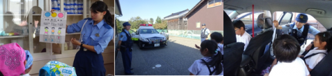 おにぎりを作った後は、お巡りさんから横断歩道の渡り方について話を聞きました。「横断歩道を渡る前に信号機が点滅を始めたときはどうしますか?」とお巡りさんから質問されたとき、子どもたちは「渡る!」「確認して渡らないようにする。」と答えていました。正解は「渡る前に点滅をし始めたら止まる。」です。他にも、「渡る前に左右の確認をする。渡るときには手を挙げる。車が止まってくれたら反対方向も確認する。」といったことを全体で確認しました。