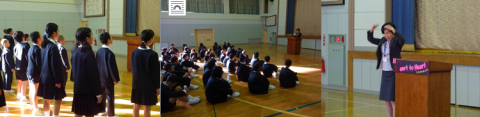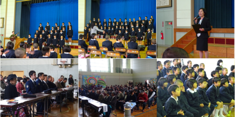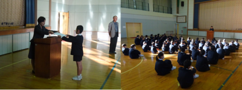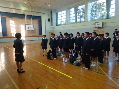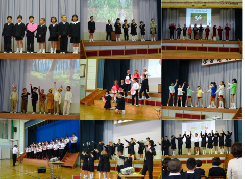 体全体で「100%勇気!」を歌いました。3年生みんなで考えたふりつけをしながら楽しく歌うことができました。3年生が歌った後、全校でも同じふりつけで歌いました。大きな振り付けで、笑顔で歌う姿がありました。