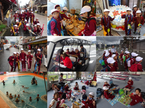 ・今日の遠足で,ドキドキしたことは,おべんとうの時間にゆかのすき間にはしを落としたことです。おべんとうを食べている途中(とちゅう)ではしがないことに気づきました。「どうしよう。このままじゃおこられる。」と思いました。でも西本先生が救出(きゅうしゅつ)を手伝ってくれました。ぼうを使ってなんとかはしがとれました。