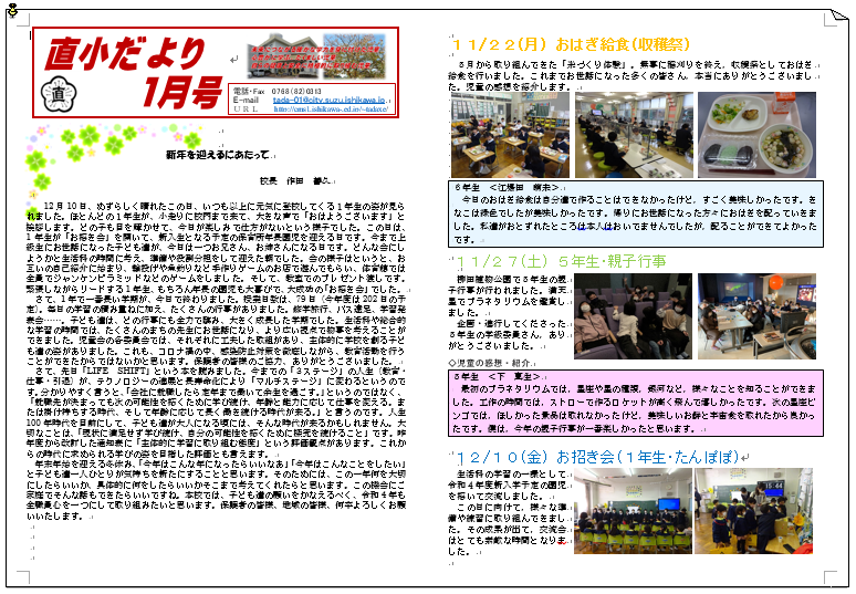 直小だより1月号をおたよりにアップしました。
