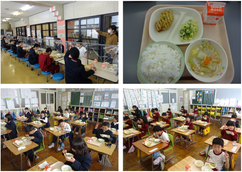 寒い日が続きますね。本日の給食は、ごはん 牛乳 いそべとり天 グリーンサラダ かす汁 でした。 大寒がスタートということで、暖まるかす汁が登場です。根菜もたくさん入っていて栄養満点です。 とてもおいしい給食でした。ごちそうさまでした。