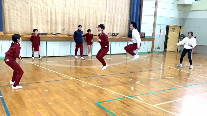 6年生が体育で長縄跳びをしていました。大きく回る長縄に、一人ずつ入っていくのですが、一人より二人、二人より三人の方が、当然のことながら同時に跳ぶのは難しいです。しかし、その難しさがあるから、成功した時の喜びが大きいのです。明るく何度もチャレンジする6年生。頼もしい限りです。