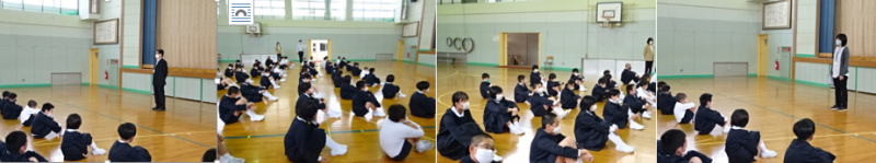 まず6年鼠田さんの伴奏で、久しぶりに全校で校歌を歌った後、校長先生のお話を聞きました。