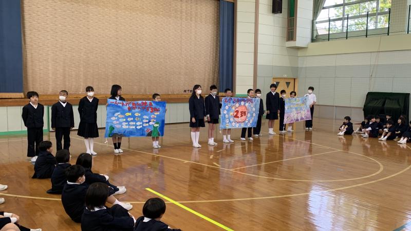 児童集会で1年生の発表がありました。7月の歌である「にじ」に振りをつけて披露してくれました。最後は全校でやりました。恥ずかしがらずに、素直に表現できる直っ子の良さが現れていました。また、5・6年生は薬物乱用防止教室がありました。テーマは「たばこ」。様々な害、また、誘われても断る勇気を学べたことと思います。新学期3日目。今日も充実した1日でした。