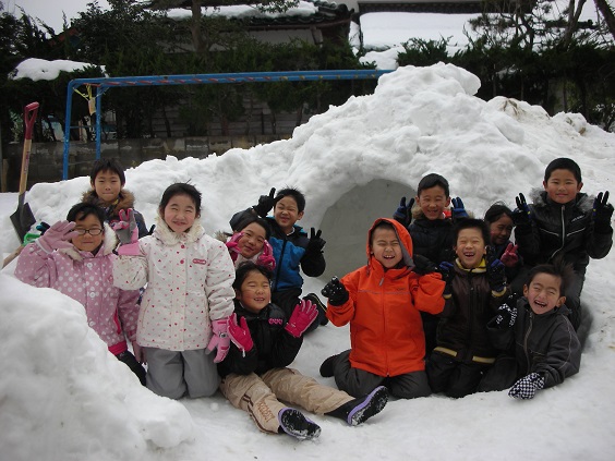 1/27(水)に1年生がかまくらを作りました。自分たちで会議を開き,どんな遊びがいいのか。持ち物はどうすればいいのか。など,担任に頼ることなく相談をして決めたそうです。