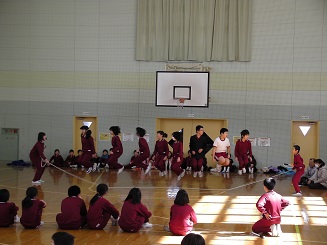 25日(木)になわとび集会が開催されました。縦割り班が3グループに分かれて連続跳びや長縄跳び,リレー等の競技で競いました。各班のリーダーを中心にしっかり練習していました。一人一人の取組も,全校で頑張ることができました。