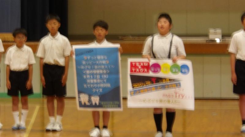 保健委員会の発表がありました。劇を使った「歯」に関するクイズなどが沢山あり、準備の素晴らしさがうかがえる内容でした。「歯」はとても大事なものです。本日の発表をふまえて、これまで以上に「歯」を大事にしていってほしいと思います。