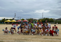 ダンスは、全校みんなで協力して取り組む種目の一つです。高学年は「スターマイン」、低学年は「APT」、全校でミセスグリーンアップルの「青と夏」をおどりました。ダンスは、いろんな種目の後半にあるので、みんな疲れていたけど、最後まで大きく、笑顔でおどっていました。