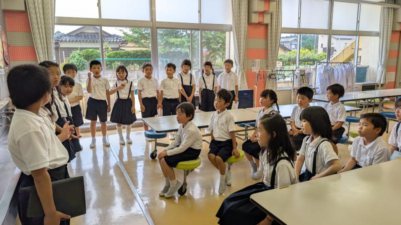 体力テスト(直っ子オリンピック含め)の様子を紹介します。6年生がリーダーとして頑張ってくれた直っ子オリンピック。反復横跳び・立幅跳び・上体起こし・長座体前屈の各種目に挑みました。2年生以上は、昨年度の記録を超すことを目標に頑張りました。また、別の時間にシャトルランにも取り組んでいます。1年生のジェンカの写真です。とにかく楽しそうです。最後は3年生国語学習の発表会。国語で学んだ独楽のことについて、1、2年生に向けて発表しました。3年生の立派な態度に感心したようでした。
