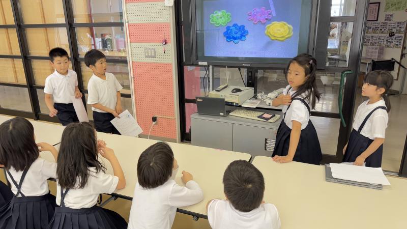 1年生が今週タンバリンデビューを果たしました。ポーズがすごくきまっていますね。3年生は、粘土で、こんなまちがあったらいいなという、マイタウンをつくりました。とても楽しそうですね。