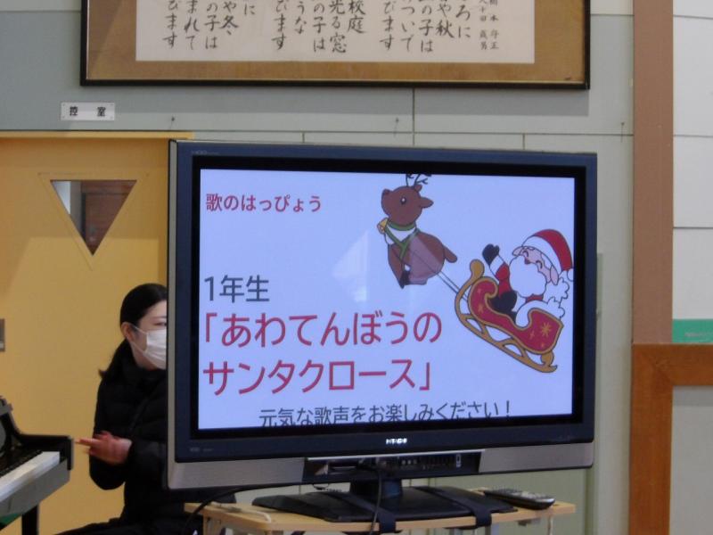 1年生クリスマスミニコンサート! 投稿日時 : 12/23 システム管理者 本日、児童集会で、2年生によるウェルカムミュージック(合奏「子犬のマーチ」)の後、1年生がクリスマスミニコンサートを行ってくれました。5人とは思えないほど大きな声で、明るく、ハツラツと、体全体を使って「あわてんぼうのサンタクロース」を歌ってくれて、体育館中が一気に楽しい雰囲気に包まれました。保護者の方、地域の方も見にきてくださり、素敵だったという感想も伝えてくれました。一足先に直小はクリスマスを迎えました! Tweet {{options.likeCount}} {{options.likeCount}}