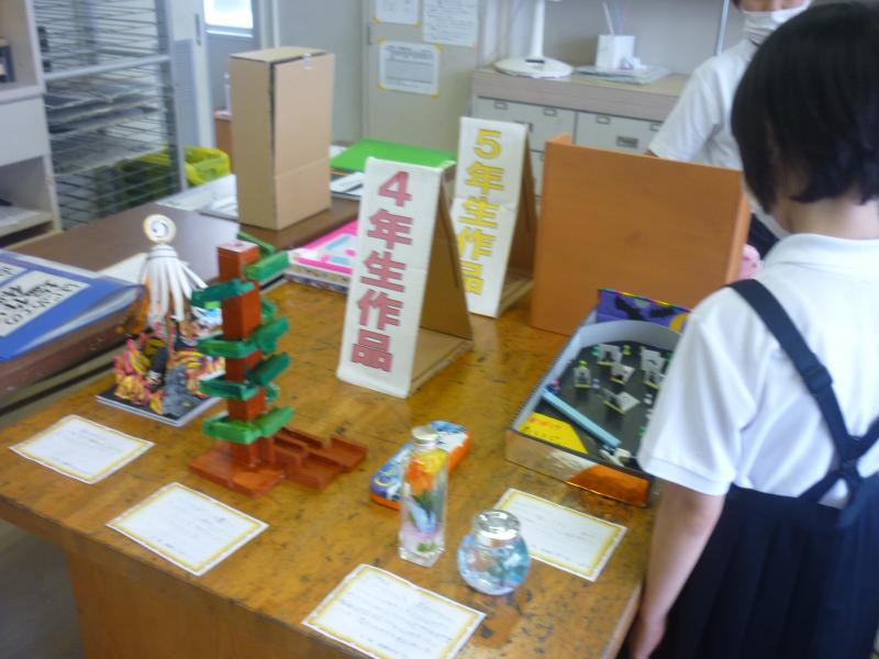 夏休みにがんばった作品展示も始まりました。今日は、子どもたちが順番に作品を鑑賞しました。
