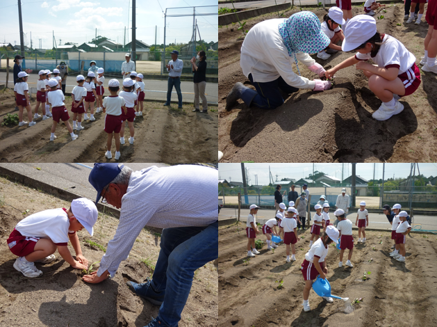 6/2 1年生活さつまいも植え 投稿日時 : 2020/06/03 システム管理者 2日(火)5限目に、さつまいもの苗植えをしました。この日の先生は、地域のおじいちゃんおばあちゃんです。斜めに植える方法 で、教わった通りに植えることができました。 次の日からは、水やりも当番を決めて頑張っています。野菜の「さつまいも」と花の「あさがお」ですが、同じ「ヒルガオ科」の植物です。「同じ」や「違う」を見つけながらお世話や観察を頑張ります! Tweet {{options.likeCount}} {{options.likeCount}}