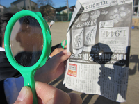 冬の太陽でも虫めがねで新聞紙を焦がせるか? 投稿日時 : 2015/12/09 rika カテゴリ:3年生 昨日,今日と,小春日和。気温は低いもののとても天気がいい。 そこで,電気の学習は一先ず休んで,久しぶりに太陽の光を使った実験をしました。 やったことは,虫めがねで新聞紙を燃やすこと。最初は,うまく焦点を合わせなかった子どもたちですが,だんだん上手になり,どの子の新聞紙からも煙が上がっていました。 また,虫めがねを通った光が一点に集まるようすを,煙の中の光線で見てもらいました。これも興味深く見てくれたようです。 ただ,「もう終わるよ~」と言っても,なかなか終わってくれないのが困りものですがね。 Tweet {{options.likeCount}} {{options.likeCount}}