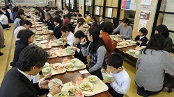 前日の学校公開(百人一首大会)と連日にもかかわらず、たくさんの保護者さんが参加してくださり、なごやかに給食を楽しみました。お忙しい中、ありがとうございました。