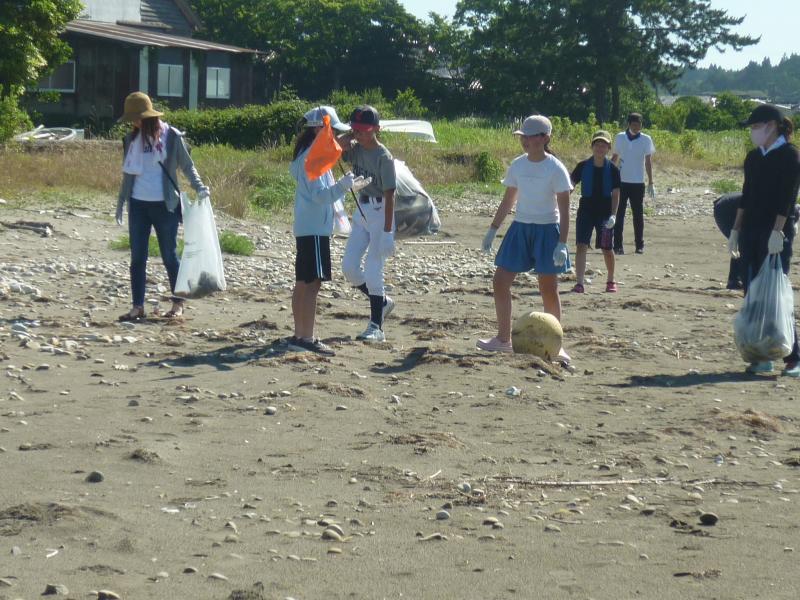 2日(土)杉ノ木浜でクリーンビーチ活動を行いました。前日に、田中区長様が草を刈って下ったところに集合し、NPO法人能登半島おらっちゃの里山里海の尾形様から、なぜゴミがあるのか、どんなごみを拾うのか、注意する事などの説明を受けました。そして、ごみ拾いです。小さなものから大きなものまで、たくさん拾ってくれました。拾ったごみは、プラスチックやビン、缶など分別し、重さを測定しました。約70Kg集まりました。お世話して下さった皆様、ありがとうございました。この豊かで美しい砂浜を今後も残していけるようにと暑い中、砂浜をきれいにしてくれた5・6年生や進んで参加してくれた子ども達、そして保護者の皆様、ありがとうございました。