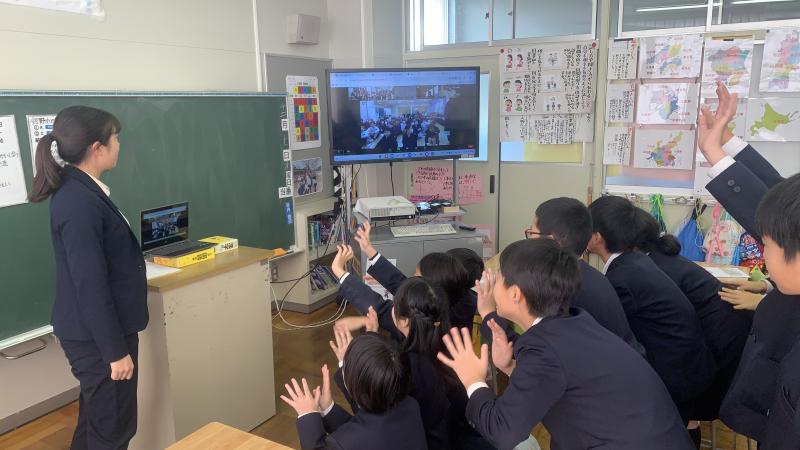 本校の4年生が市外の大規模な小学校の4年生とオンラインで交流しました。お互いの学校の様子を伝え合った後、国語科で作成したパンフレット(伝統工芸品を調べたもの)を紹介し合いました。自分のPRポイント等、十分な準備をして臨んだものの、かなり緊張したそうです。しかし、他校の前で自分のパンフレットを発表できて、かなり自信になったようです。とても素敵なオンライン交流でした。