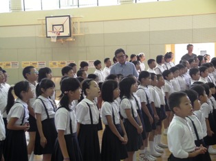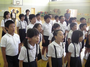 今日の児童集会では,「この星に生まれて」の練習をしました。高音と低音に分かれてれ練習した後,歌声をあわせました。「日本一の歌声」をめざして,ハーモニーがそろってきました。これからが楽しみです。