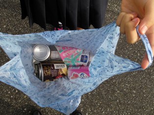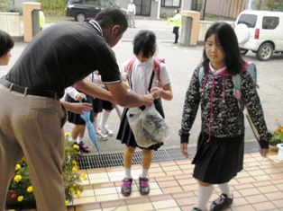 昨日は,お祭りだったので,たくさんのゴミが落ちていたのでしょう。我慢できずに拾ってきたということでした。ビニル袋がなくて,近所の人に頼んでもらったということでした。24日のクリーンクリーン活動でも,たくさんゴミを拾ってきてくれた女児でした。私たち大人も見習いたい行動でした。優しい心と実行力に感動しました。