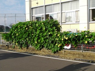 4年生の育てているヘチマです。一日にどれだ成長するでしょうか。毎日,放課後に観察しています。なんと1日に20㎝くらい伸びています。