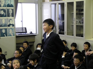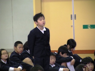 いよいよ12月(師走)です。今日の全校朝会では,たくさんの表彰式の後,学校長から「衛星はやぶさ」や「合唱の取組」を例に,「目標を持ち,こつこつ努力することの大切さ」についの講話がありました。