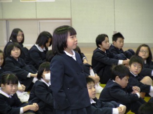 12/24(水)は,2学期の終業式です。学校長からは,「歌声」「あいさつ」「返事」の3つの約束がしっかり守られていてうれしかったという話がありました。児童からも,自分のがんばったことや心に残ったことを話してもらいました。以前に比べ,児童も進んで手を挙げて自分を表現することが多くなってきました。