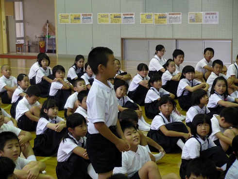 始業式では,校長先生から「夏休みがんばって続けたこと」「家の都合で転校していった友達のこと」についてのお話がありました。
