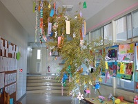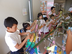 願いが叶いますようにと、心をこめてつるしました。保護者の皆様、お子さんがどんな願い事を書いたのか、聞いてみてくださいね。そして、叶えるための努力を応援してあげてください。