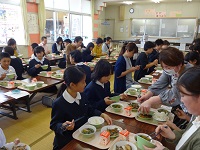 授業参観後、給食試食会がありました。今日のメニューは、麦ごはん、ふくら