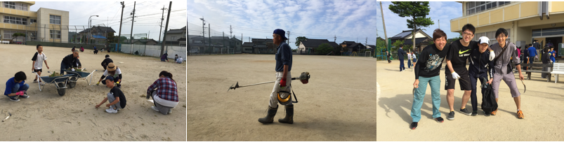 19日(日)AM6:30から、来週の運動会に向けて直小運動場の除草作業を行いました。AM6時前からおいでた方もおいでて、わずか1時間足らずで運動場の緑色があっという間に消えていきました。