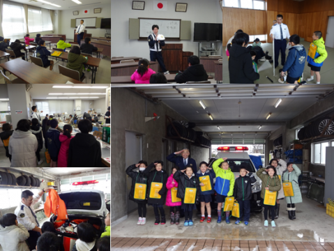 3年生は今、社会科で「ふせごう、交通事故や事件」について学習しています。今回警察署を見学し,[警察署内のようす]や[警察署で働く人々のようす]を調べたいと考えて。訪問しました。