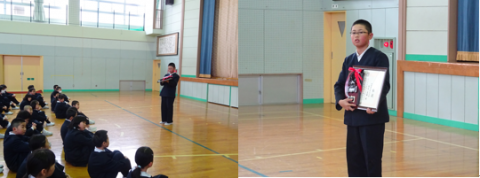 ・蛸島小学校や飯田小学校、大谷小中学校、他にも緑丘中学校や飯田高校の人たちがたくさんいて、緊張せずに表彰を受けることができたので、よかったです。
