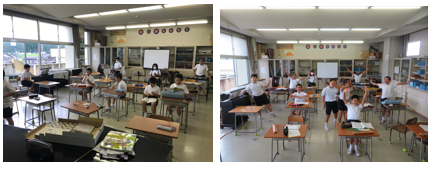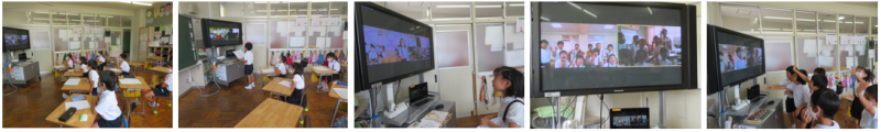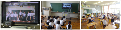 今回の6年生の歌は、「われは海の子」。インターネットを通じて6年生の歌声と歌う姿をみんなでみながら、学校中の教室から、元気な歌声が響きわたっていました。